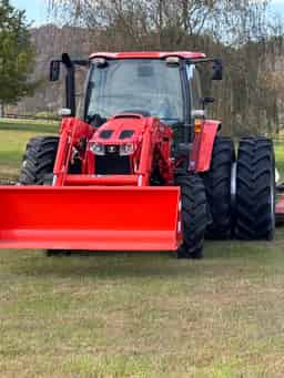 Call for pricing! Like-new tractor with loader & duals. Consignment unit. Low hours, clean interior. Installed options include: 4 remotes, front & rear work lights, buddy seat, heavy duty metal fuel tank guard, rear wheel weights, front suitcase weights, telematics.